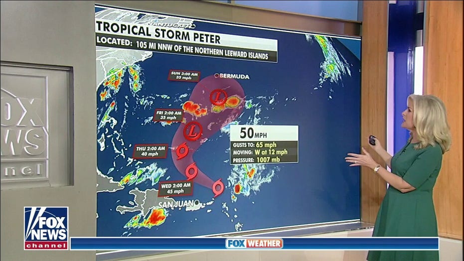 Tropical Storm Peter will pass north of the Leeward Islands, Virgin Islands and Puerto Rico over the next few days.