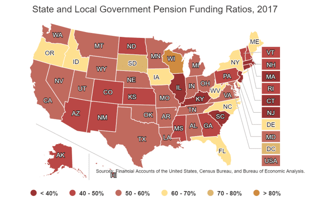 Federal ReserveCanada today has a public pension system that is well-funded and sustainable. This was not always the case. Until the late 1980s, its public pensions were in poor shape. During the inflationary 1970s, benefits were enhanced with retroactive indexation not matched with increased funding. Contributions were commingled with other public funds and lent to Provincial governments, not invested in markets. In some cases, Canadian provinces didn’t even have a good grip on the true actuarial value of their pension liabilities.