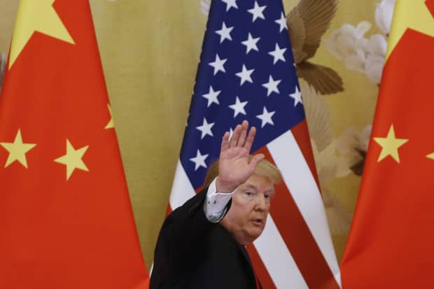 President Donald Trump appears at the Great Hall of the People in November 2017 in Beijing.