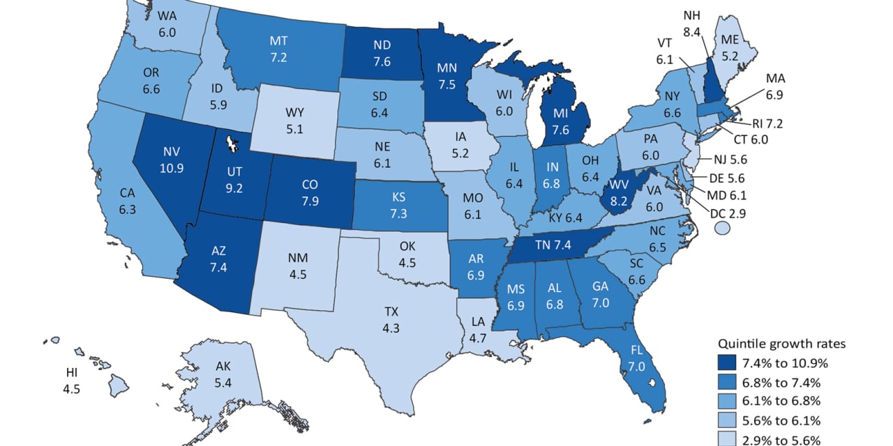 Nevada, heavily dependent on indoor tourist traffic, saw the biggest uptick in growth among all states in the first quarter as Americans started to get vaccinated and return to the casinos. The “accommodation and food services” category of GDP was the biggest contributor to the state’s growth, BEA noted, and expanded 16.9% nationally.